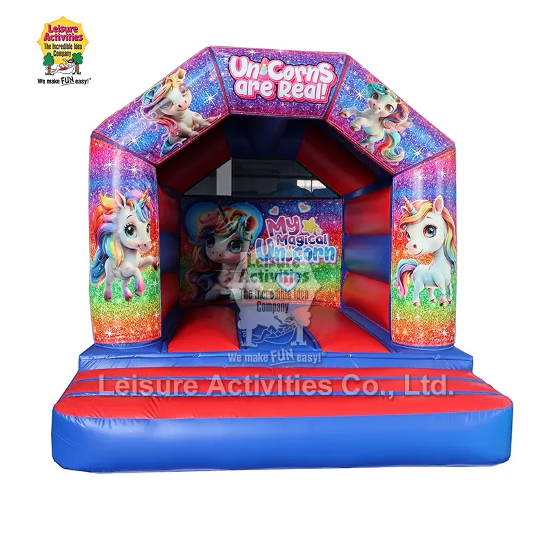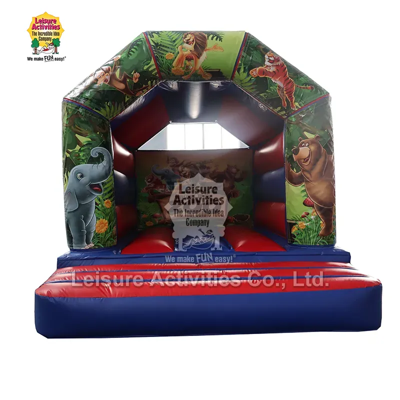 Mini Inflatable Bouncy Castle Bingkai Abang Biru Kanthi Payon 13ftx10ftx9ft: Kastil Bouncy Inflatable iki saka Leisure Activities® nduweni desain kastil A-frame abang lan biru klasik. Nampilake panel karya seni sing bisa dicopot sing dipasang karo Velcro pancing lan Velcro daur ulang, ngidini gampang diijolake karo tema sing beda kaya tema unicorn, tema Zoo, lsp.